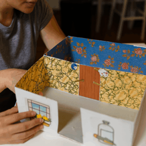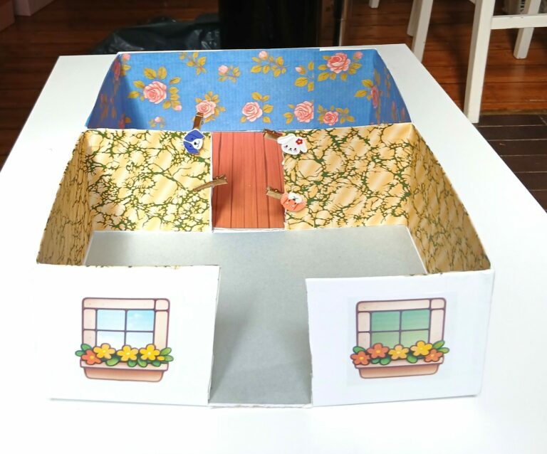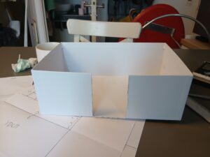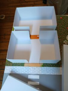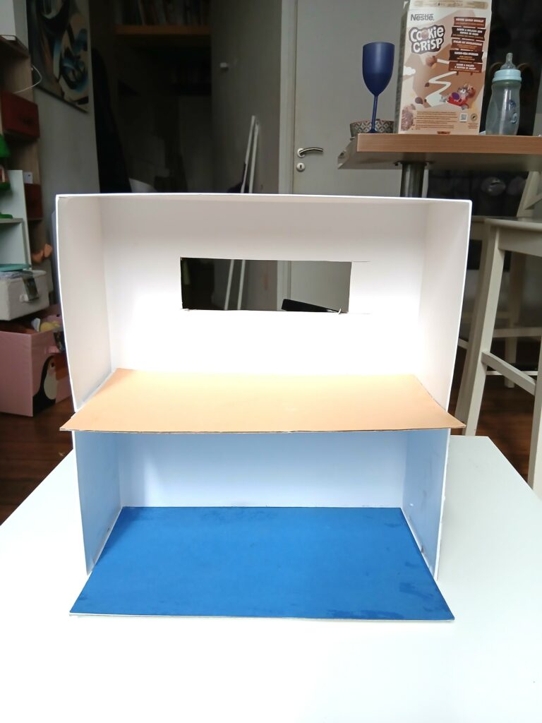 Colle les 2 boîtes l’une sur l’autre, puis les sols : pose des livres dessus pour le temps de séchage. C’est fini !