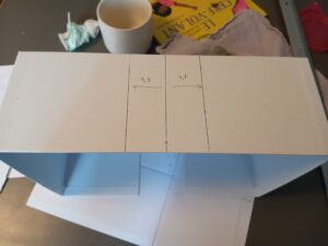 Découpe dans les couvercles 2 cartons de la bonne longueur pour entrer dans les boîtes à chaussure et faire le sol