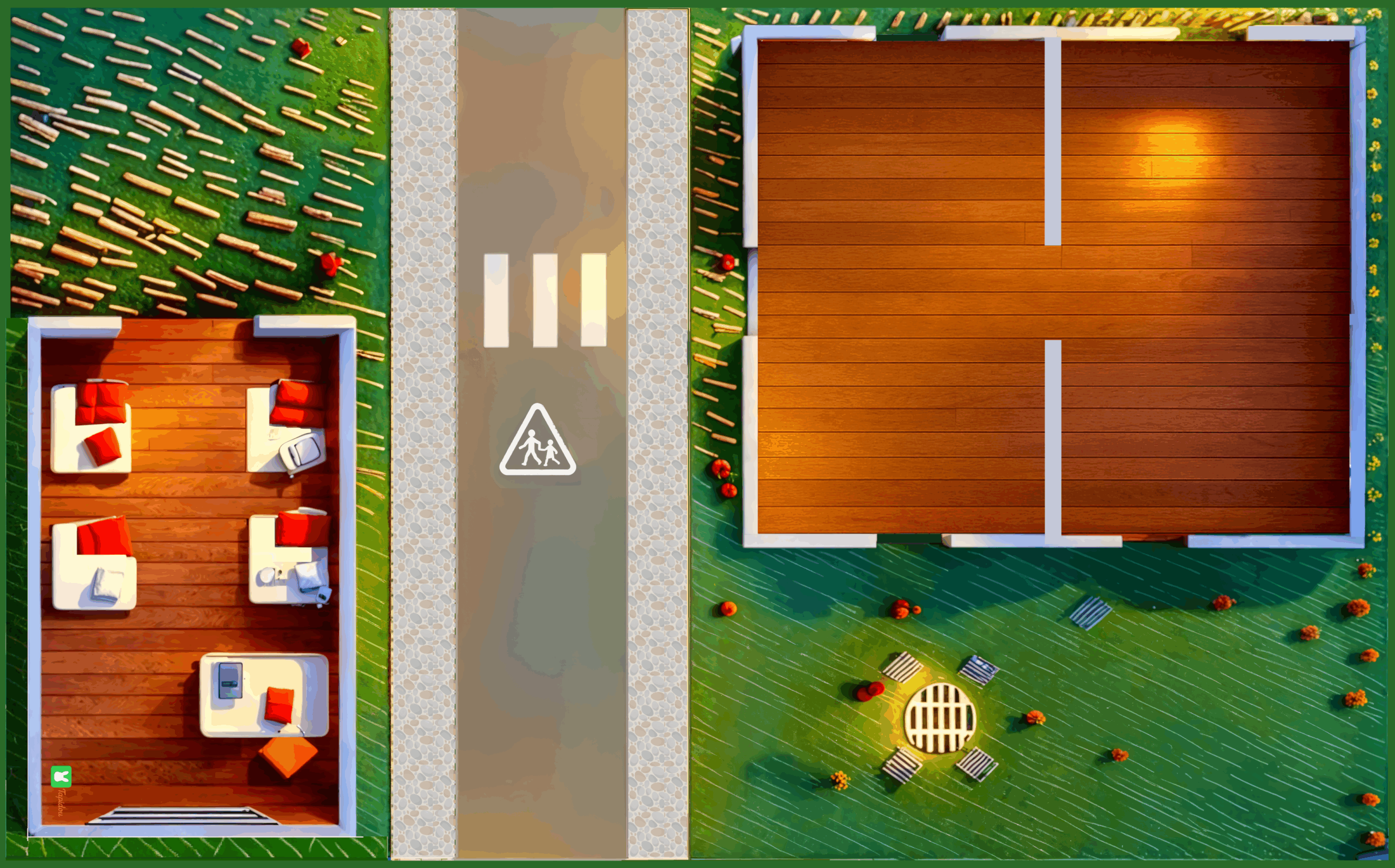 La version meublée est prête à jouer immédiatement avec quelques figurines. L’emplacement de la maison peut être habité par une maison de poupée en boîtes à chaussures classiques (voir notre page DIY).
