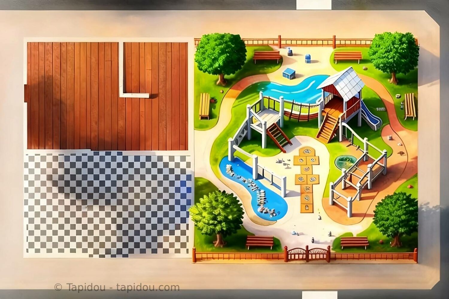 Tapis miniature qui plaît aux parents comme aux enfants pour se raconter des histoires avec de petites figurines (pour en savoir plus, visitez le site Tapidou)